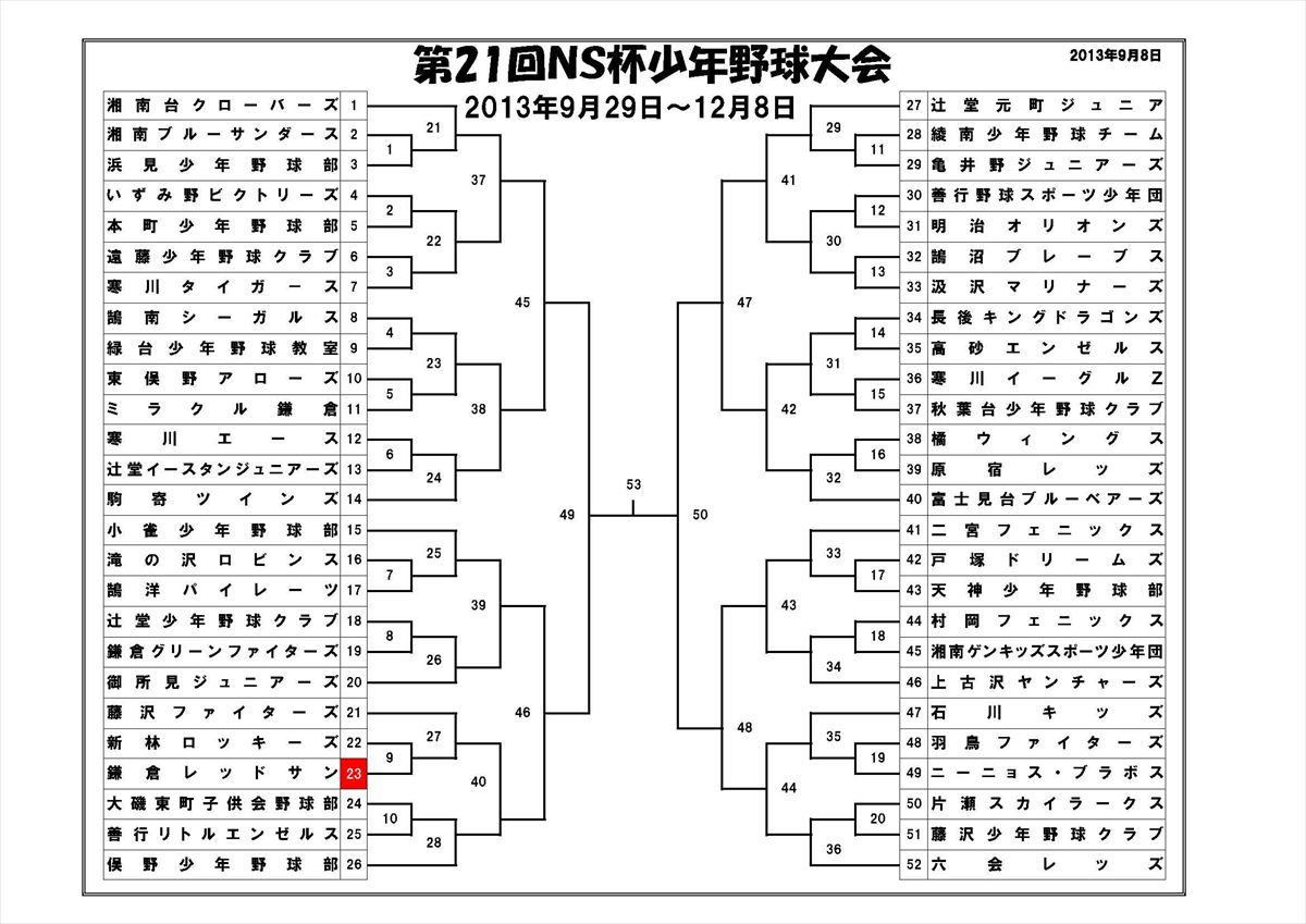 | 第21回(2013年) NS杯少年野球大会 トーナメント表 | ||||||||