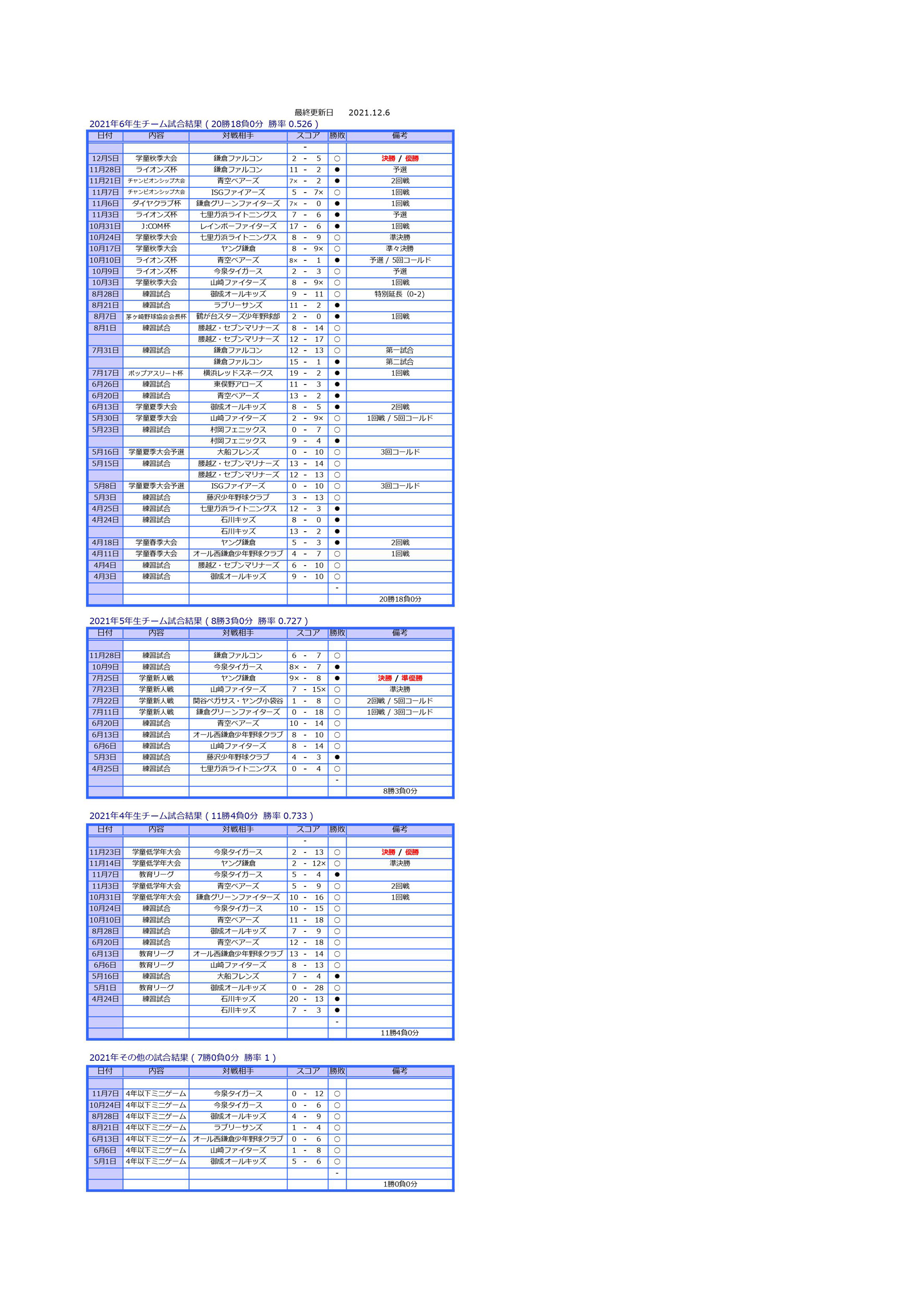 最新試合結果報告